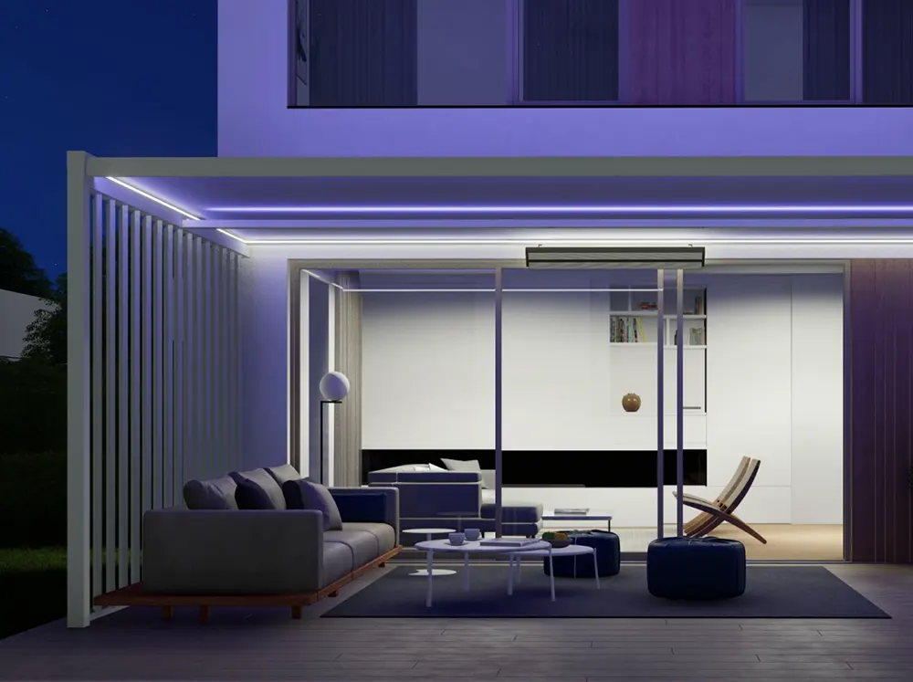 Je idealna za prostore, kjer si želite večje fleksibilnosti pri pokrivanju zunanjega vrta ali terase. S pergotendo lahko v trenutku spremenite prostor pod zvezdami v pokrito teraso, zaščiteno pred dežjem in drugimi vremenskimi vplivi. Tako kot bioklimatska pergola tudi pergotenda ponuja mnogo dodatne opreme, kot so LED svetila, senzor za dež in veter ter druge.