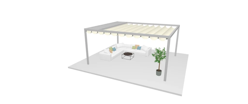 Pergola Cubic združuje minimalistično kockasto obliko z napredno funkcionalnostjo. Streha je sestavljena iz dveh slojev napetega blaga, ki skupaj tvorita geometrijsko obliko in zagotavljata estetsko skladnost. Zgornji sloj ponuja učinkovito zaščito pred padavinami, medtem ko spodnji sloj zagotavlja estetski zaključek. Zaradi močne konstrukcije je takšna streha odporna celo na snežne obremenitve ter veter hitrosti do 120 km/h. Streha je popolnoma avtomatizirana, kar omogoča enostavno upravljanje z elementi, kot so stranska zip senčila, grelci in LED osvetlitev.