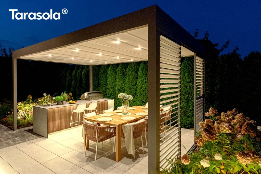 Pergola Cubic je nastala zaradi potrebe po ravni strehi, ki pa hkrati zagotavlja dobro zaščito pred padavinami.