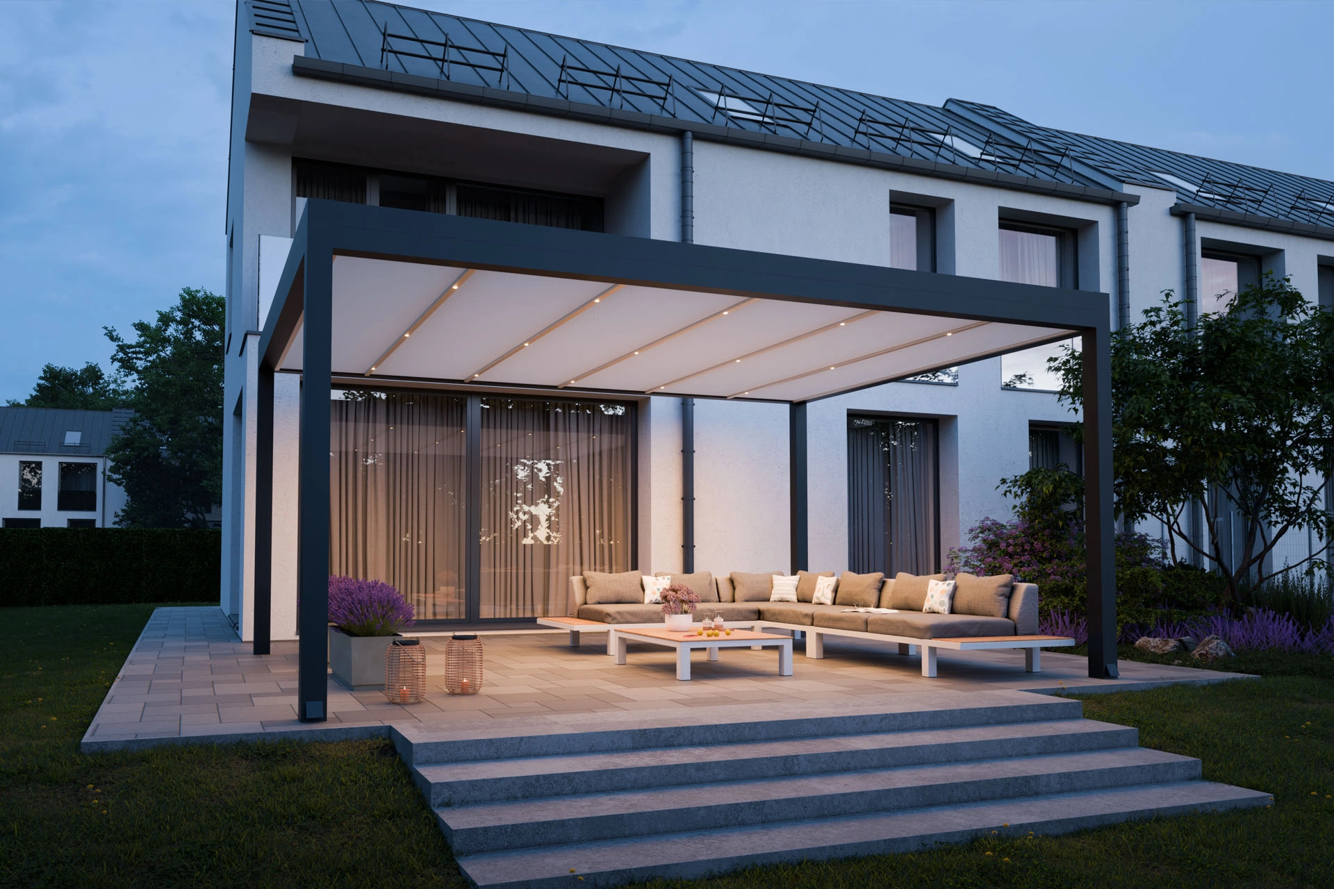 Z dodatki, osvetlitvijo, stranskimi paneli ter kombinacijo lamelne in steklene strehe ustvarite izjemno funkcionalen in udoben zunanji prostor. Ne glede na to, ali iščete prostor za sprostitev ali druženje z gosti, bo ta modularna rešitev vašo teraso spremenila v prijeten in vabljiv ambient.
