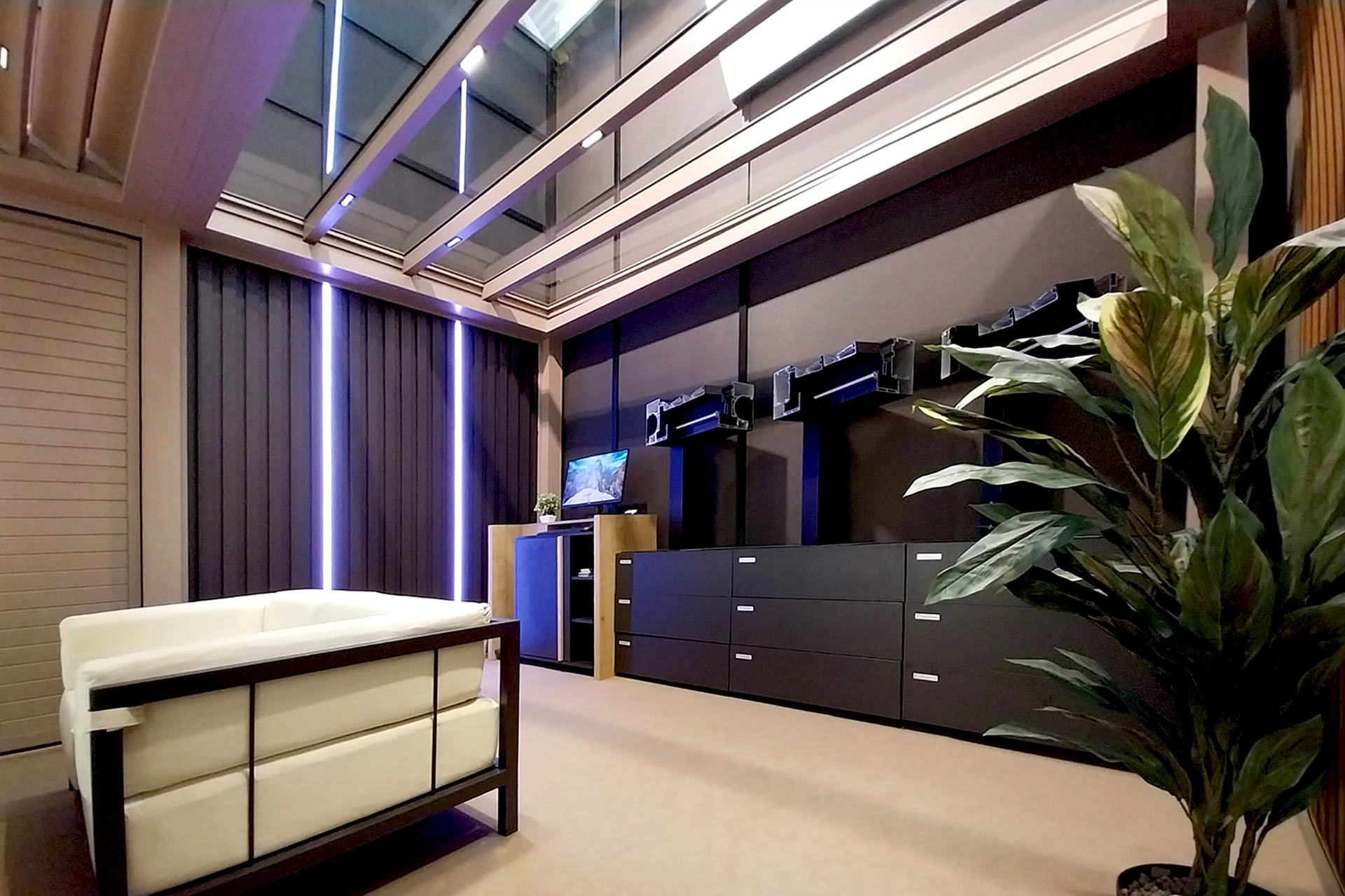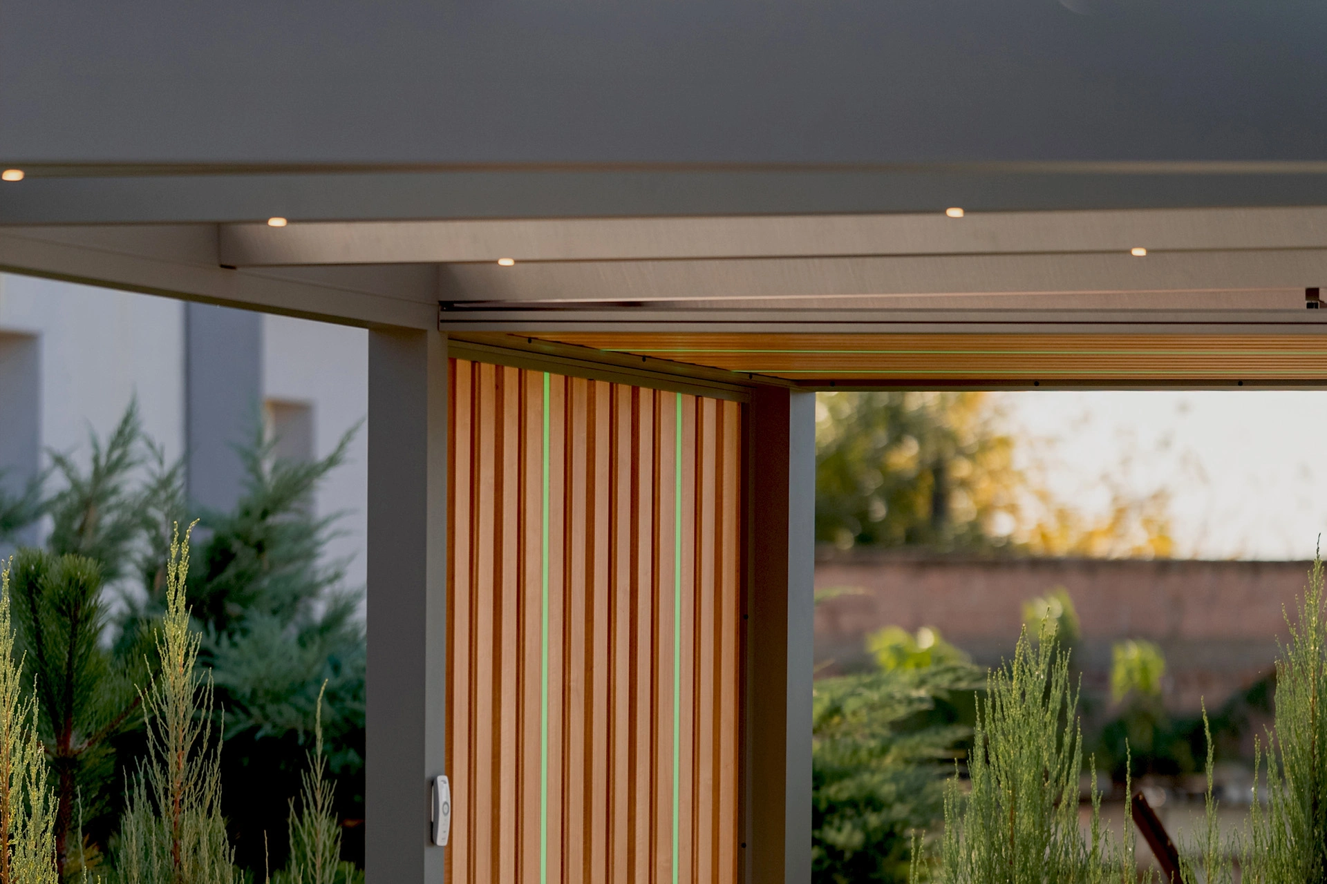 Tako tramove med steklenimi paneli kot lamele je mogoče opremiti z različnimi vrstami LED osvetlitve, ki povečajo uporabnost ter ustvarijo prijetno vzdušje podnevi in zvečer.