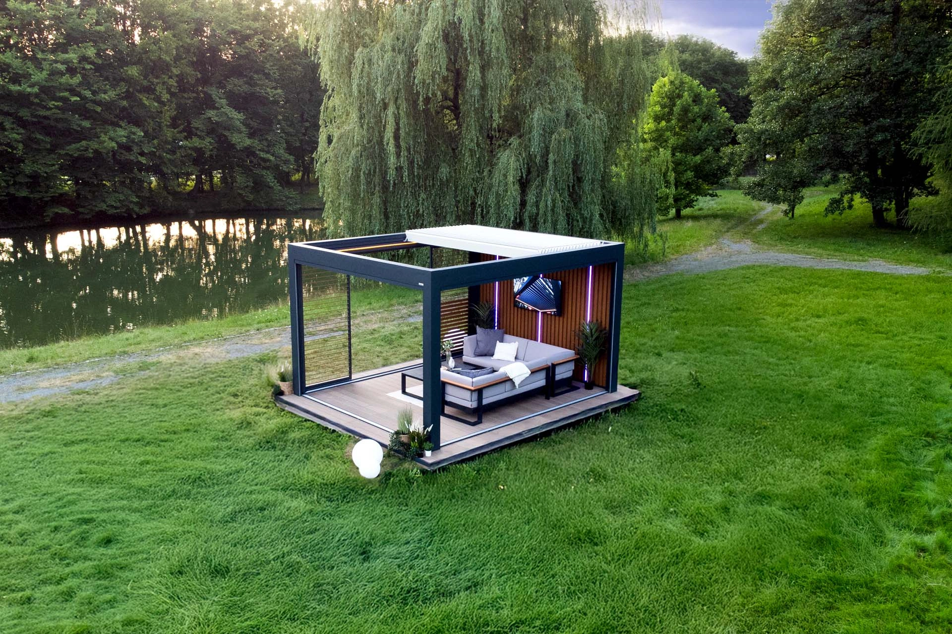Tarasola Technic View je ekskluzivna bioklimatska pergola z zložljivo streho, ki prinaša idealno ravnotežje med popolno zaščito in popolno odprtostjo. Edinstven sistem rotacijskih lamel omogoča, da streha deluje kot elegantna zaščita, ki se – kadar želite – povsem odpre in razkrije nebo nad vami.