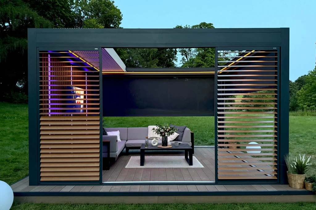 Ko se odprta streha poveže s svetlobo, odprtim nebom ali zvezdnatim pogledom, pergola postane več kot le zaščita – postane doživetje. Idealna je za terase, vrtove, hotele ali restavracije.